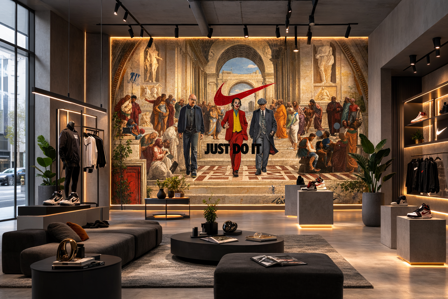 Un mur neutre transformé en décor qui attire les clients.