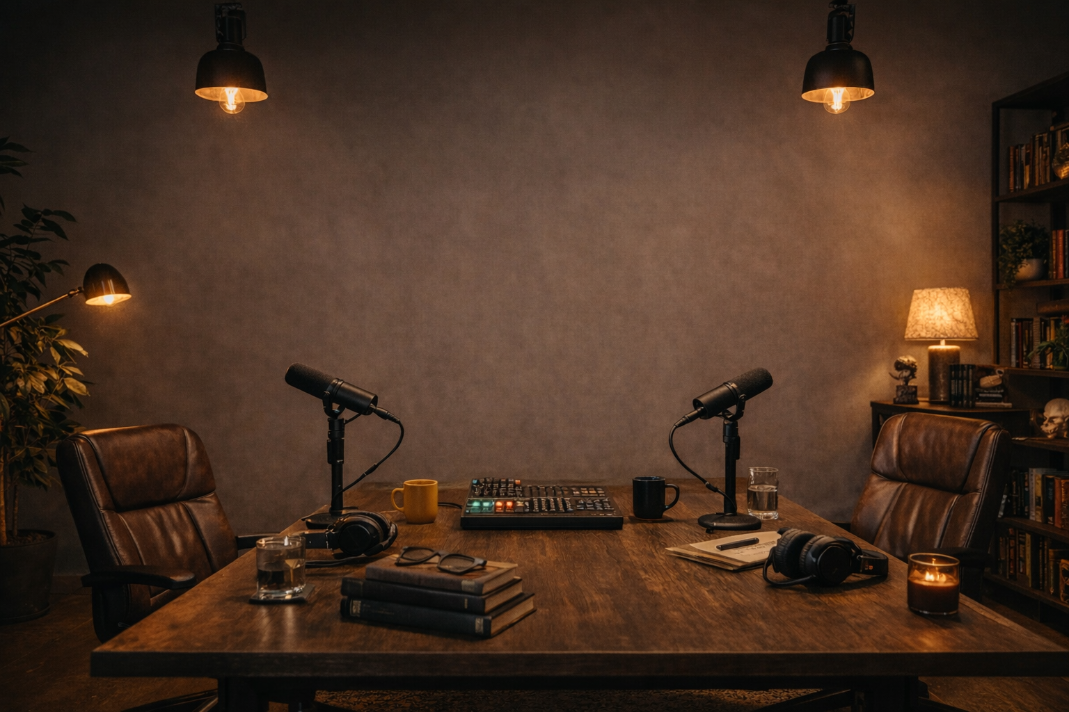 Un décor neutre transformé en studio podcast professionnel.