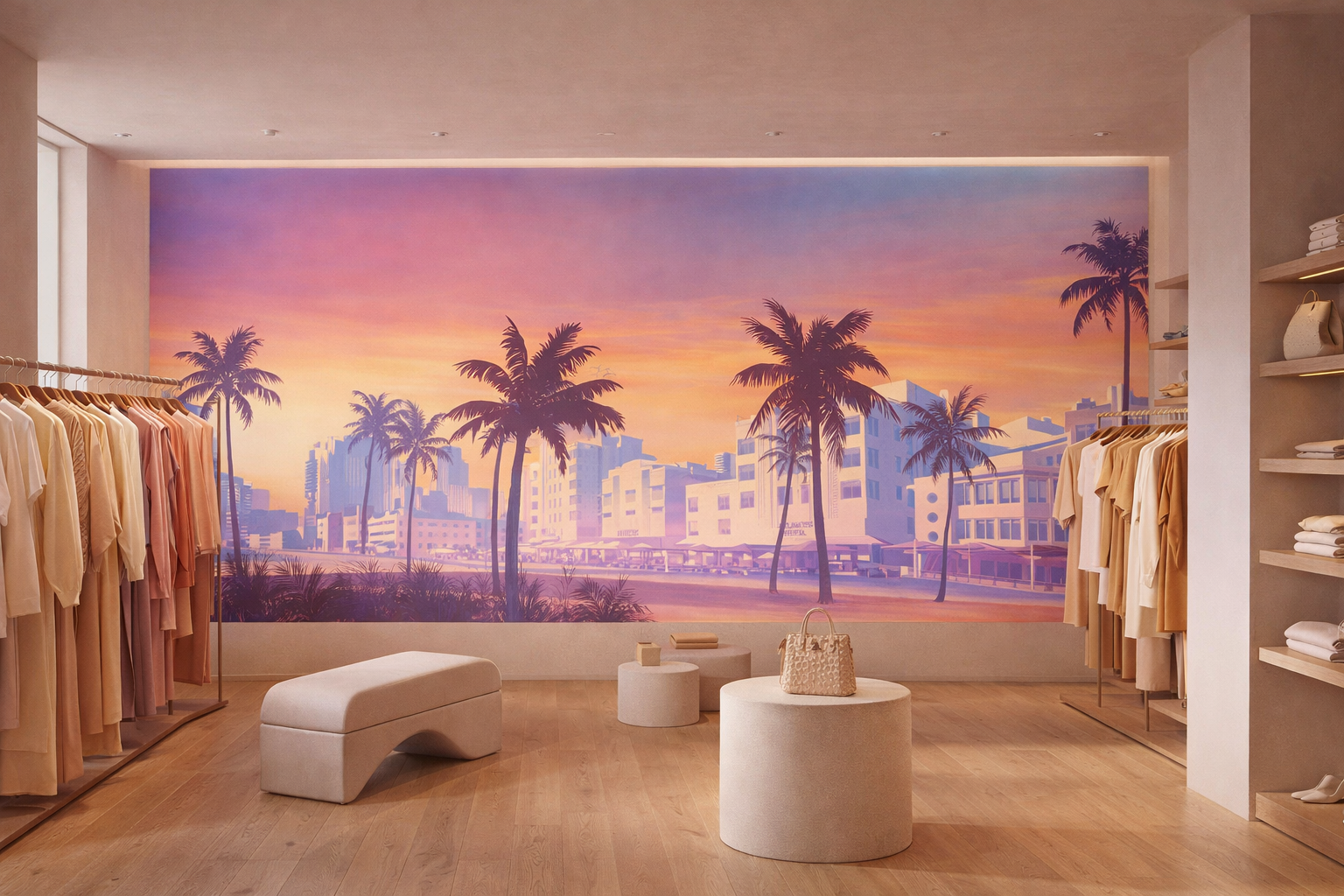 Avec un mur d’accent panoramique PIXARA, votre studio devient un véritable espace de vente visuel et professionnel.