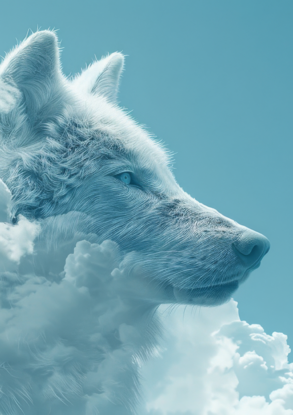 Wolf, der aus den Wolken auftaucht (Leinwand) | Mystisches Tier-Wandbild – PIXARA