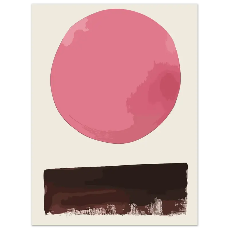 Diese zeitgenössische Komposition basiert auf einem einfachen, aber wirkungsvollen Dialog zwischen essentiellen Formen und visuellen Materialien. Der rosafarbene Kreis, der über einem strukturierten, dunklen Sockel schwebt, erzeugt eine Atmosphäre, die zugleich warm, ruhig und von tiefer Eleganz ist.