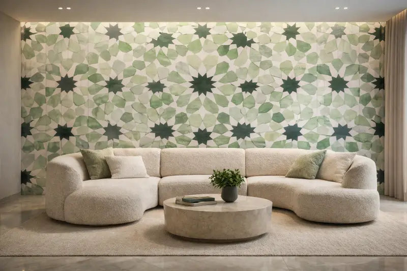 Zellige Vert Minéral — Fresque Murale Architecturale Haut de Gamme
