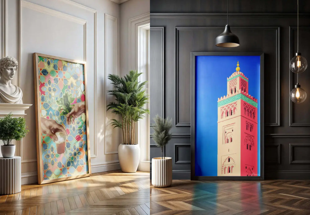 Le choix dépend de l’équilibre visuel recherché. Pour un intérieur minimaliste, privilégiez l'art japonais ou l'abstrait. Pour une ambiance chaleureuse, tournez-vous vers nos inspirations naturelles ou nos collections aux tons terreux comme l'Art du Maroc.